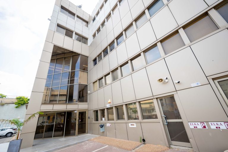 קומה רביעית הכוללת משרדים מפוארים עם חניון תת קרקעי וחיצוני בכניסה של איזור התעשייה ״פארק-אפק״ ראש-העין.