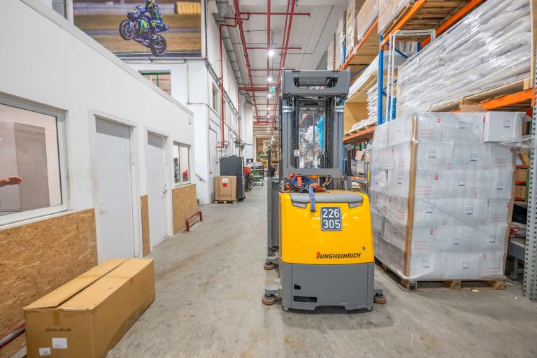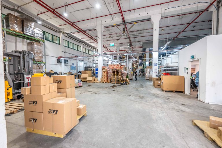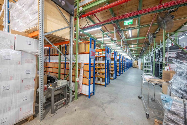מבנה לוגיסטי בן 5 קומות עם חניון עילי וגישה ישירה למשאיות, אזורי פריקה וטעינה מוסדרים.